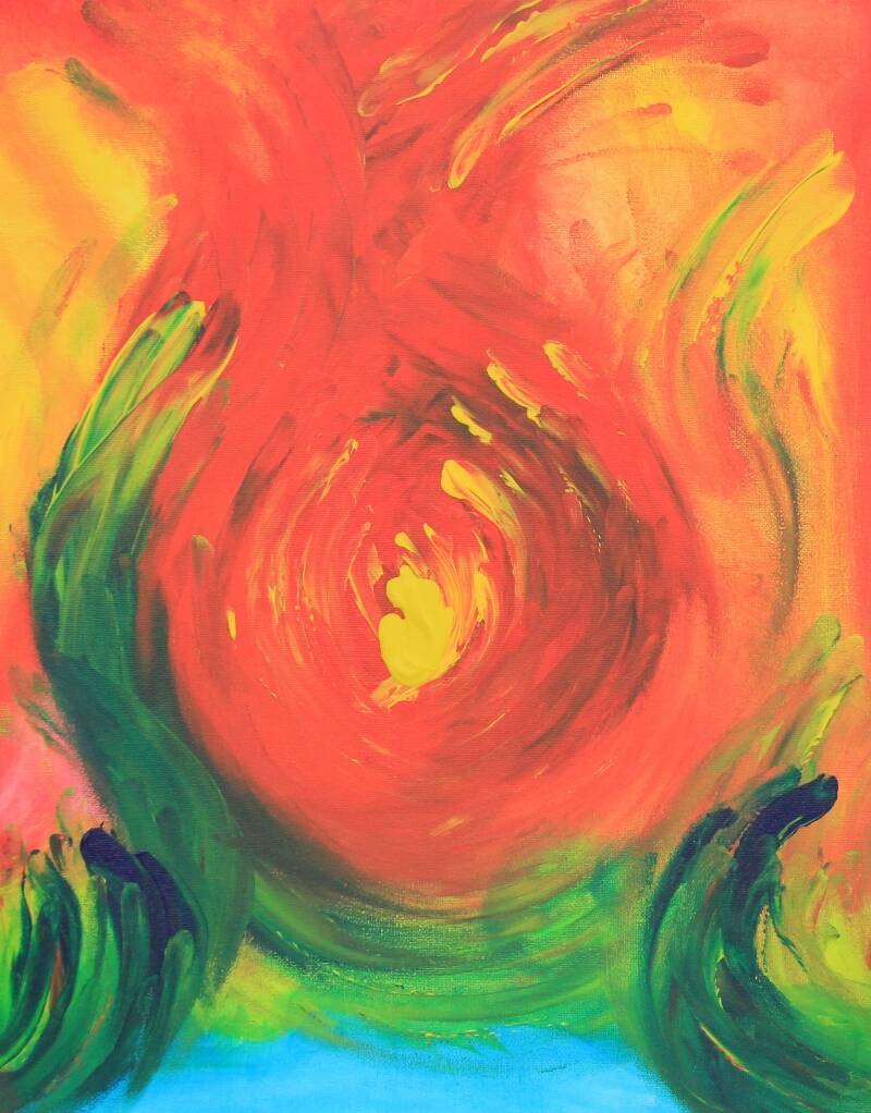 titel van dit schilderij het Echte Horen gaat via de deur van je Hart